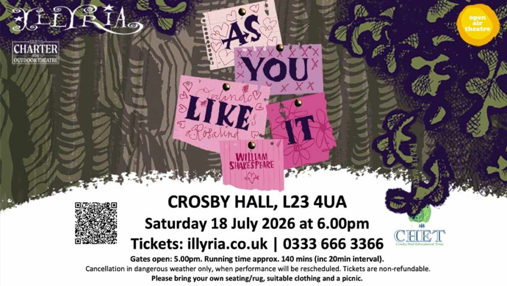 Join us for Shakespeare’s iconic comedy performed where its action is set – in the great outdoors, by multi international award-winning Illyria’s 5-strong cast of classically trained professional actors. Tickets: £20 adults, £10 children (under 16).